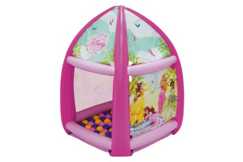 Now your little princess will be part of the Disney royal court with the Princess Beauty in Bloom Playland by Moose Mountain. This playland features a simple inflate/deflate design that includes one inflate valve and one deflate valve. With 20 colorful soft flex balls and large crawl through openings the fun awaits your royal princess. Ideal for playroom or yard.