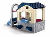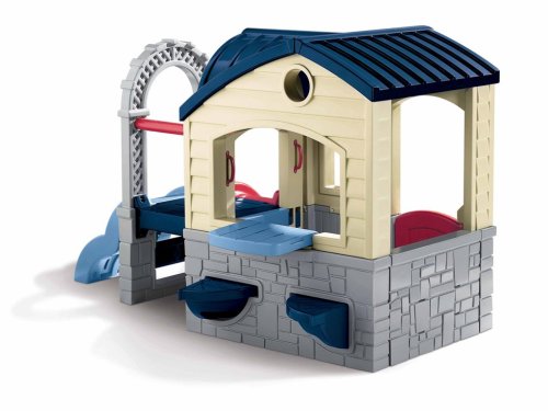 A backyard play house and climber in one! This fun design includes a clubhouse, sliding board and climbing ramp. Kids will enjoy social play, role play and active play. A great playhouse for encouraging mental and physical development. The design provides play opportunities on all sides. Kids will have hours of fun playing with this versatile playhouse and climber combo! Parents can interchange the slide and climbing steps and open the wall to make the play area larger.House wall with climbing steps and slide opens to allow for more play area and easy adult accessTable top flips and can be used inside the playhouse or outside on the patioWorking Dutch door with mail slotWorking porch lightTwo swivel seats can be used inside or outsideLength 52.5Width 78.25Assembly Light AssemblyAge 1.5-5 yearsHeight_ 50