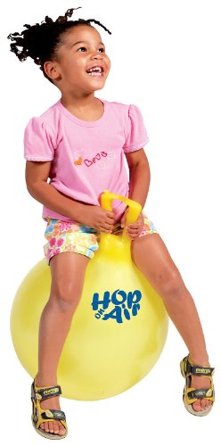 This Hop Ball is the very best quality in hopping balls! Made in Italy from super strong yet soft latex-free vinyl for long lasting use and durability, this ball is a great product combining fun and excercise. Excellent for indoor use and on smooth, safe outdoor surfaces. Promotes body coordination, balance and lymph circulation while providing a fun workout. Special patented handgrip safety handle allows for the safest bouncing. Maximum sustainable weight of 300 pounds; for ages 3 years and older.