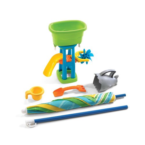 •Includes 5 piece accessory set: water tower with slide, spinner and removable cup, shark scoop, and shovel/rake
