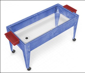 ChildBrite's original. Made of sturdy, moisture-resistant high impact resins. Great for indoor/outdoor use without worry. Multifunctional! Features a 6″ deep full CLEAR LINER with super plug for easy draining, WRITE-ON/WIPE-OFF LID, and two caddies. 4 LOCKING CASTERS provide super mobility. Comes with a blue frame. UPS Ground. Some assembly required.