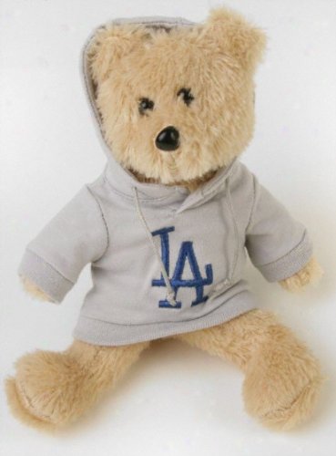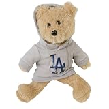 This Major League Baseball plush bear features your team's logo on a gray hoodie, and measures approximately 8 inches. Made of soft, plush material, it's the perfect gift for any baseball fan Officially licensed LA Dodgers plush bear wearing a grey hooded sweatshirt with Dodgers logo.