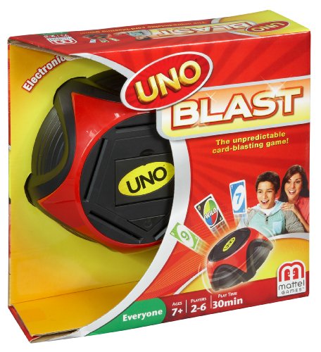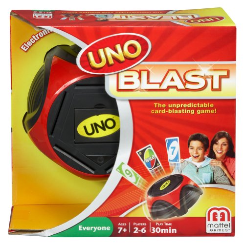 UNO Blast adds a new level of surprise and excitement to AmericaÕs #1 brand of card games! When you draw a card you canÕt play, you have to put it in one of five slots in the card blaster. The cards stack up until someone randomly triggers the blast Ð when the blaster goes off, the player adds ALL of the blasted cards into their own hand.