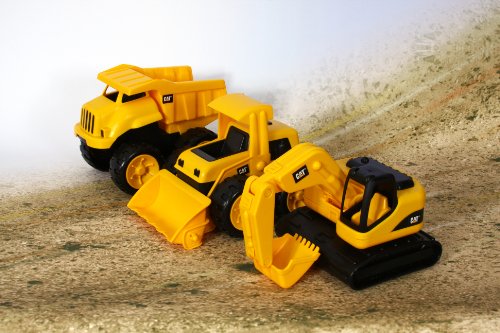 Officially licensed by CAT NA Includes dump truck, bull dozer and back-hoe Great for the beach A great addition to any sandbox No batteries required