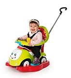 Porteur évolutif avec housse tissu et klaxon électronique 3 sons, pour enfants à partir de 6 mois.2 coffres à jouets et téléphone inclus.A partir de 6
